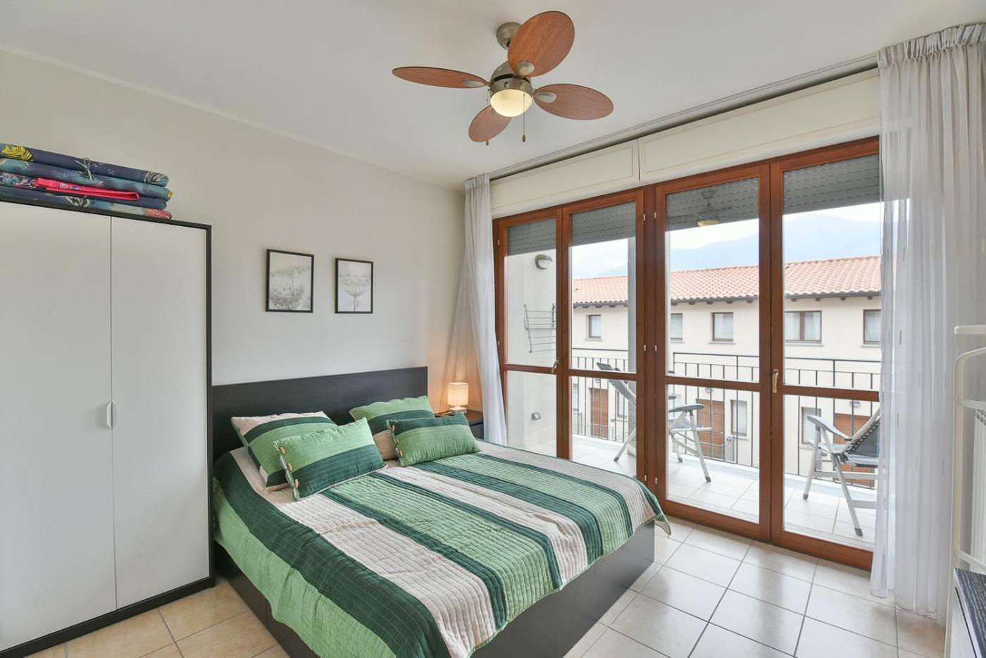 Appartamento con 2 Camere da Letto. This spacious apartment comes with 1 living room, 2 separate bedrooms and 1 bathroom with a bath and a shower. Meals can be prepared in the kitchen, which features a stovetop, a refrigerator, kitchenware and an oven. The apartment has tiled floors, a seating area with a flat-screen TV, a washing machine, a private entrance as well as lake views. The unit has 3 beds.