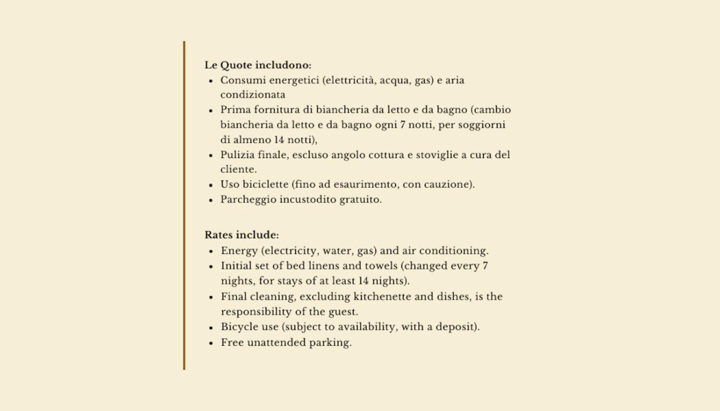 Siete pregati di comunicare in anticipo a lorario in cui prevedete di arrivare. Potrete inserire questa informazione nella sezione Richieste Speciali al momento della prenotazione, o contattare la struttura utilizzando i recapiti riportati nella conferma della prenotazione.